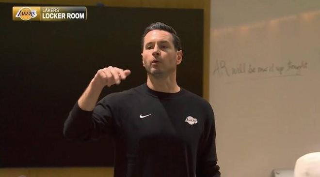 近日,美媒晒出了一张球迷发现的关于湖人队更衣室的“盲点”——在湖人队更衣室内的白板中,主教练雷迪克身后写着一行字“AR(奥斯汀-里夫斯)今晚会戴麦克风。”