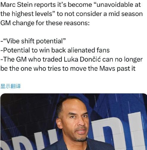 11月10日,根据NBA记者Marc Stein消息,独行侠在赛季中期将不得不解雇球队总经理!